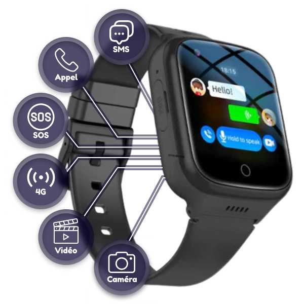 SOS pour assistance : En cas de situation d'urgence, les enfants peuvent appuyer longuement sur le bouton SOS pour demander de l'aide immédiate.